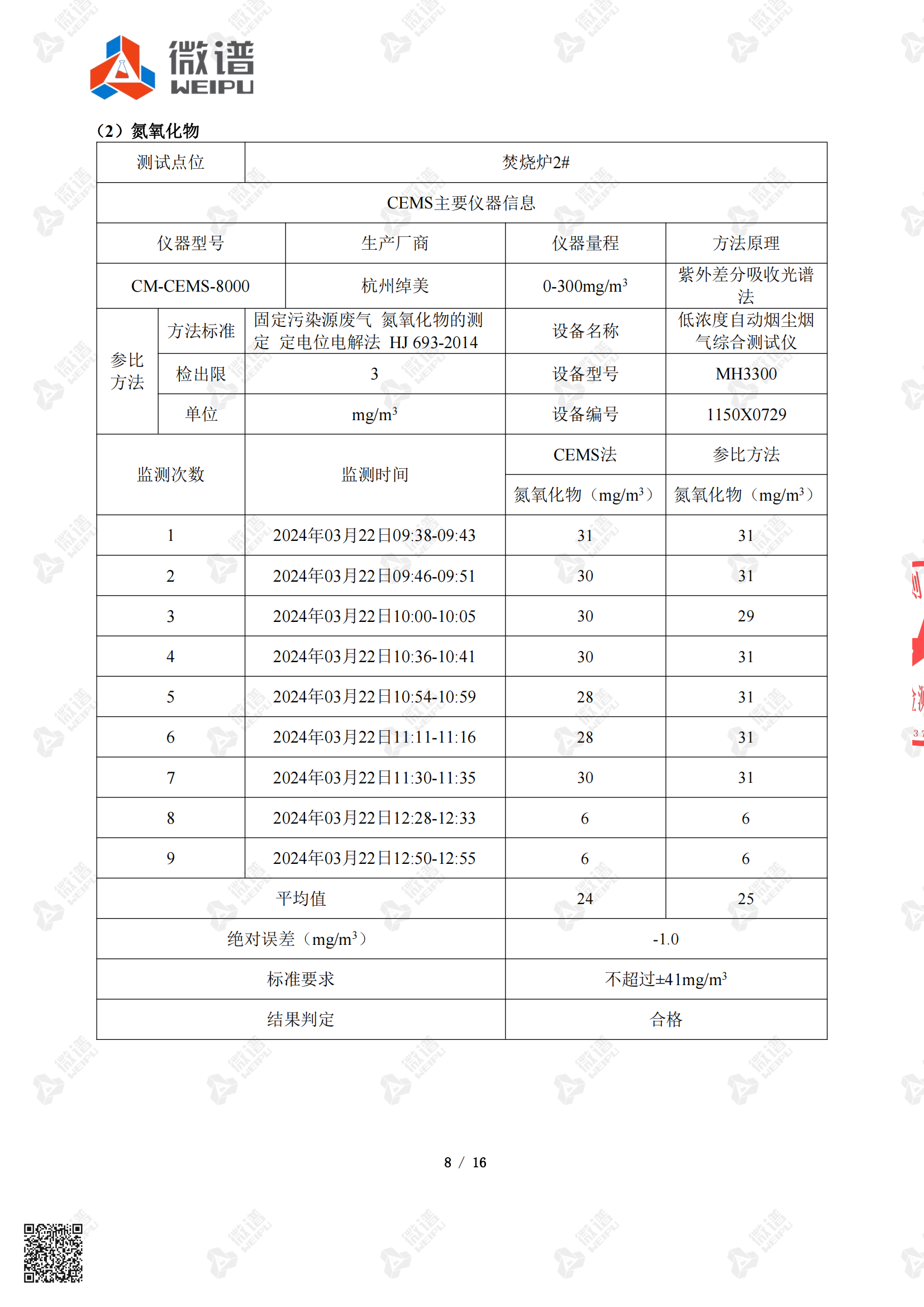 大氣污染源焚燒爐自動監(jiān)測系統(tǒng)比對報告